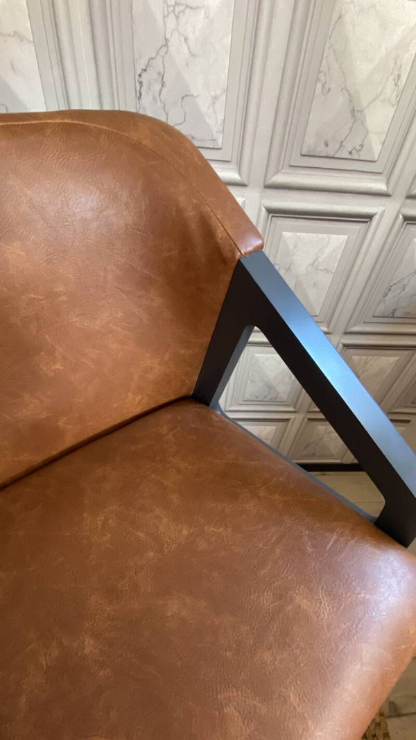 The ALFIE range of Bar Stools designed by SEAN DARE exclusively for KNIGHTSBRIDGE FURNITURE COMPANY.This is a set of 2 contemporary and modern style bar stools in a grey wood tone with a solid tan faux leather. These stools have a luxurious theme, featuring upholstered seats with backrests and armrests. With a height of 108cm and a length of 60cm, these bar stools are perfect for indoor use adding a touch of sophistication to any space.