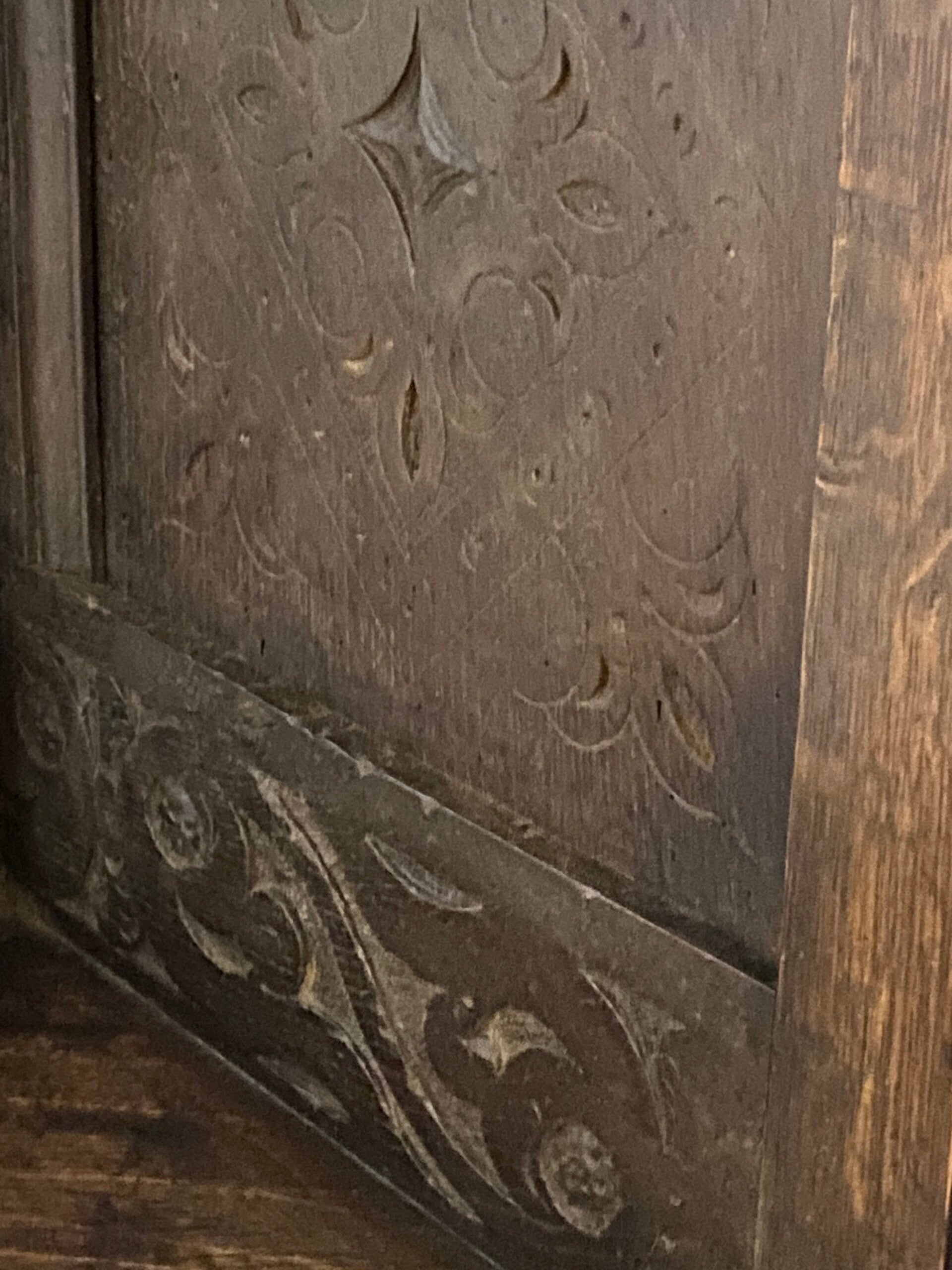 Condition; Very sturdy with signs of aged previous repair to door inner bottom rail and damage to door top right (see photos). Small section of decorative beading missing front top left,but nothing to distract from what is a stunning piece.